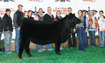 SSTO Foxy Supreme Champion Female SSTO Foxy 8913F, a 10/25/18 polled, homozygous black, 50% Lim-Flex daughter of EXAR Classen 1422B out of Riverstone Charmed exhibited by Peyton Collum of Guthrie, OK.